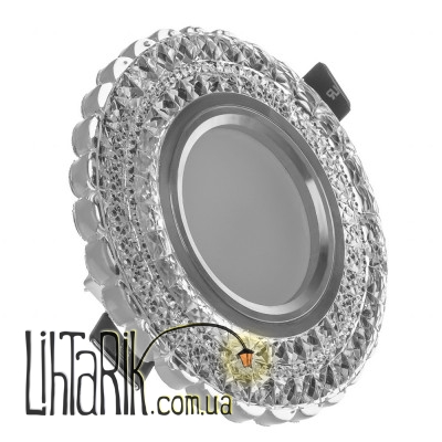 Декоративный точечный светильник HDL-G262/LED3W WH предназначен для дополнительной подсветки всего интерьера или отдельных его составляющих: мебели, полок, арок, зон отдыха или рабочих зон. Каркас светильника изготовлен из металла, окрашен в цвет хром. По периметру декорирован стеклянными, прозрачными, гранеными камушками, которые на солнечном свете или при свете лампы будут переливаться цветами радуги, воссоздавая красивую игру света. Тыльная сторона оборудована металлическими «лапками», которые обеспечат надежное крепление точки на горизонтальной или вертикальной поверхности. Дополнительно светильник оборудован светодиодной подсветкой. Для работы необходимо использовать одну светодиодную лампочку с цоколем GU5.3 мощностью до 8 Вт (патрон входит в комплект). Светильник рассчитан для работы от сети 220 В (трансформатор на 3 Вт для LED подсветки входит в комплект).