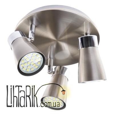 Светильник-спот HTL-179/3 GU10 SN+CH – идеальное решение для освещения помещений, выполненных в современных стилях. Такого рода светильники можно монтировать как в жилых помещениях, так и в кафе, барах, ресторанах, офисах и т.п. Спот изготовлен из металла, окрашен в два цвета: хром и матовый никель. Его конструкция представлена небольшим основанием, кронштейном, к которому прикреплено три плафона. Плафоны маленькие, тоже металлические, оборудованы поворотными механизмами, с помощью которых можно регулировать угол их наклона, а также площадь освещения. Благодаря такой конструкции, осветительный прибор используют для локальной подсветки зеркал, картин и прочих элементов интерьера, зонируют пространство. Спот может быть использован в качестве вспомогательного источника света. Для его работы следует выбирать три галогенные или светодиодные лампы с цоколем GU10 мощностью 35 Вт.