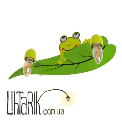 Маленькие дети всегда принимают игрушки за живые существа. Для них игрушечный мишка или котенок являются лучшими друзьями, с ними дети делятся своими секретами, проводят все свое время. Светильник HTL-200/2 E14 имеет форму листика, который держит маленький лягушонок своими лапками. Такой светильник станет для Вашего ребенка еще одним другом, который будет висеть на стене и дарить малышу радость каждый день. Светильник изготовлен из металла, окрашен в зеленый цвет. Плафоны открытого типа, поэтому лучше всего использовать лампочки с красивой колбой. Для работы светильника необходимо две лампочки с цоколем Е14 мощностью 60Вт. Между источником света и основанием светильника находится поворотный механизм, с помощью которого можно легко изменять направление освещения. Светильник в виде лягушки не только украсит комнату, но и сделает ее визуально теплее и уютнее. Удивите Вашего малыша таким чудесным светильником.