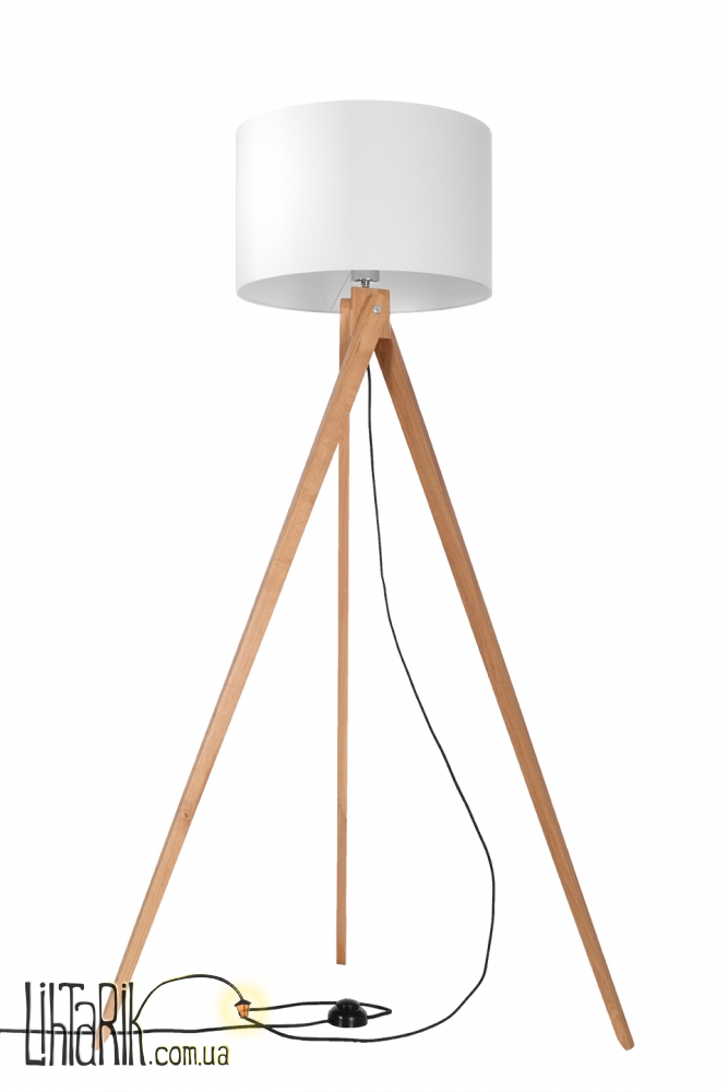 Оригинальный торшер с оригинальным абажуром, бочковидного вида впишется в любую дизайнерскую среду.