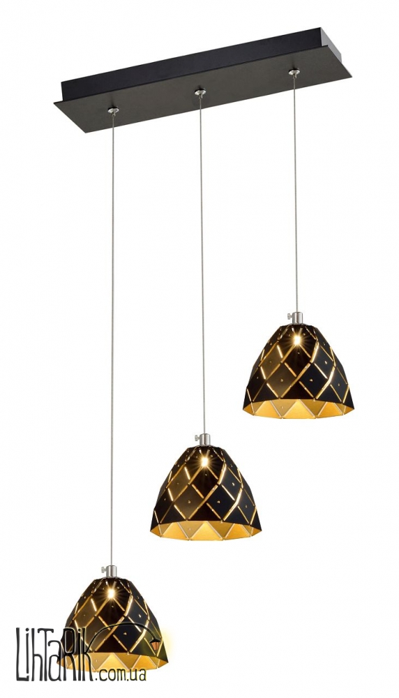 Подвесной светильник конусообразной формы, в виде зонта или же купола, выполнен в с супер современной геометрической форме (полигонами) впишется в любую дизайнерскую среду. Модель представлена в золотых, черных тонах. Светильник изготовлен из металла высокого качества