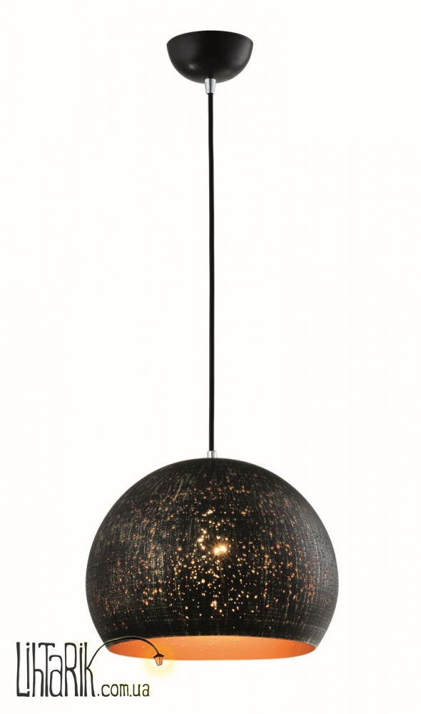 Светильник подвесной круглого (шарообразного) вида впишется в любую дизайнерскую среду. Модель представлена в черных тонах. Светильник изготовлен из металла высокого качества