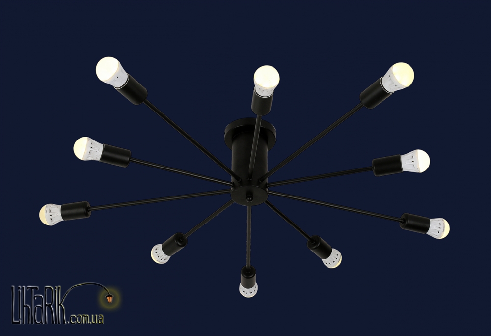 Припотолочная люстра паукообразный дизайн максимально осветит пространство и впишется в любую дизайнерскую среду. Подходит для вашей гостиной, кухни, прихожей, спальни. Модель представлена в черных тонах. Светильник изготовлен из металла высокого качества