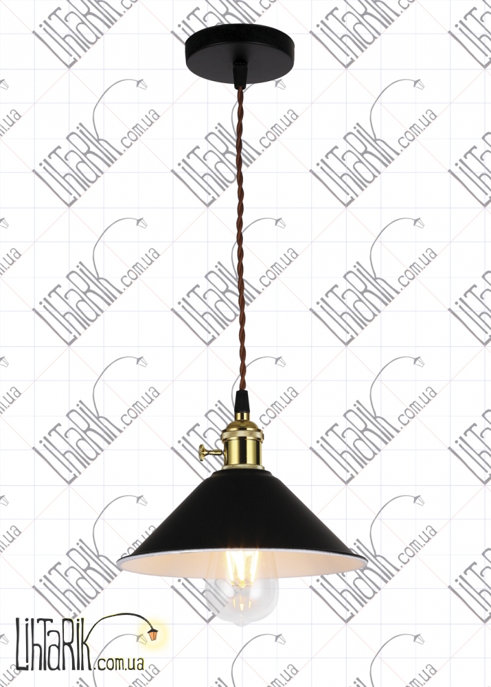 Подвесной светильник, Светильник подвесной конусообразной формы впишется в любую дизайнерскую среду. Подходит для вашей кухни, прихожей. Модель представлена в черных тонах. Светильник изготовлен из металла высокого качества