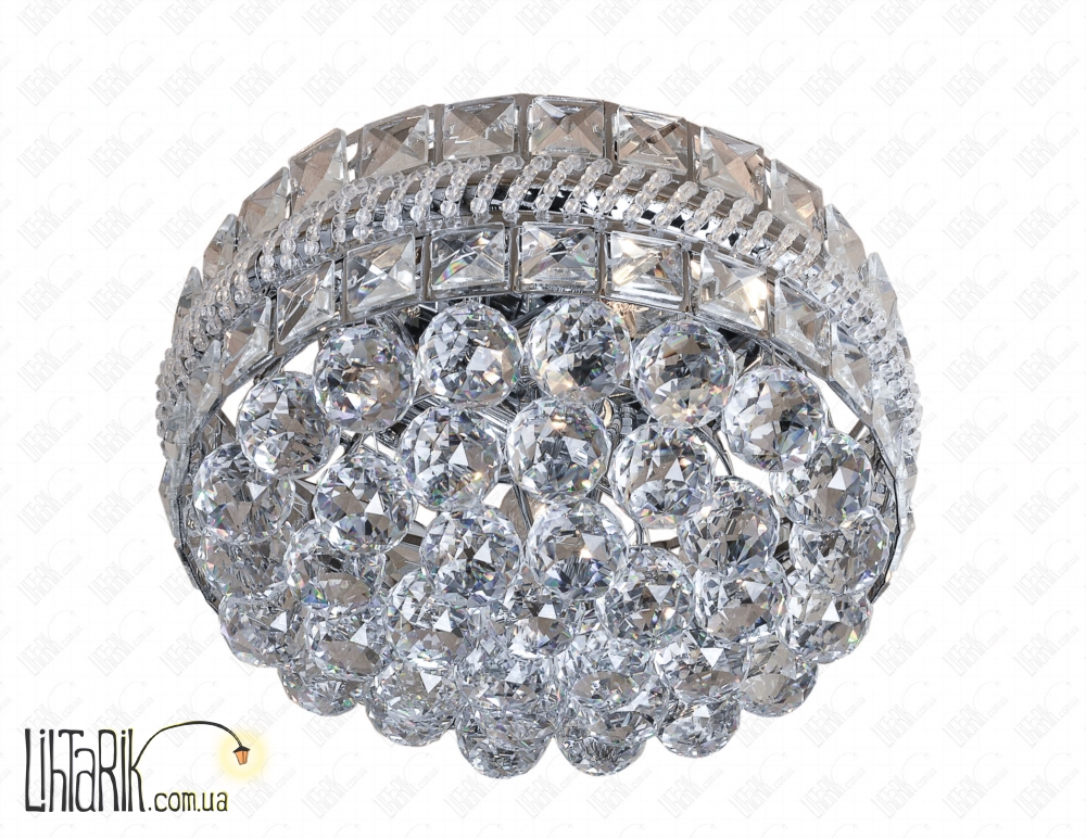 Припотолочная люстра бочковидного вида, круглого (шарообразного) вида, с хрустальными подвесами впишется в любую дизайнерскую среду. Подходит для вашей гостиной, прихожей, спальни. Модель представлена в хромированных тонах. Светильник изготовлен из металла, стекла, хрусталя высокого качества