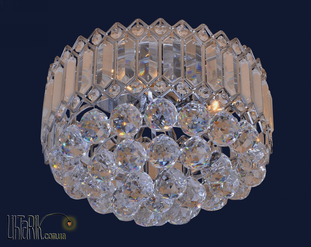 Припотолочная люстра круглого (шарообразного) вида, с хрустальными подвесами впишется в любую дизайнерскую среду. Подходит для вашей гостиной, прихожей, спальни. Модель представлена в хромированных тонах. Светильник изготовлен из металла, стекла, хрусталя высокого качества