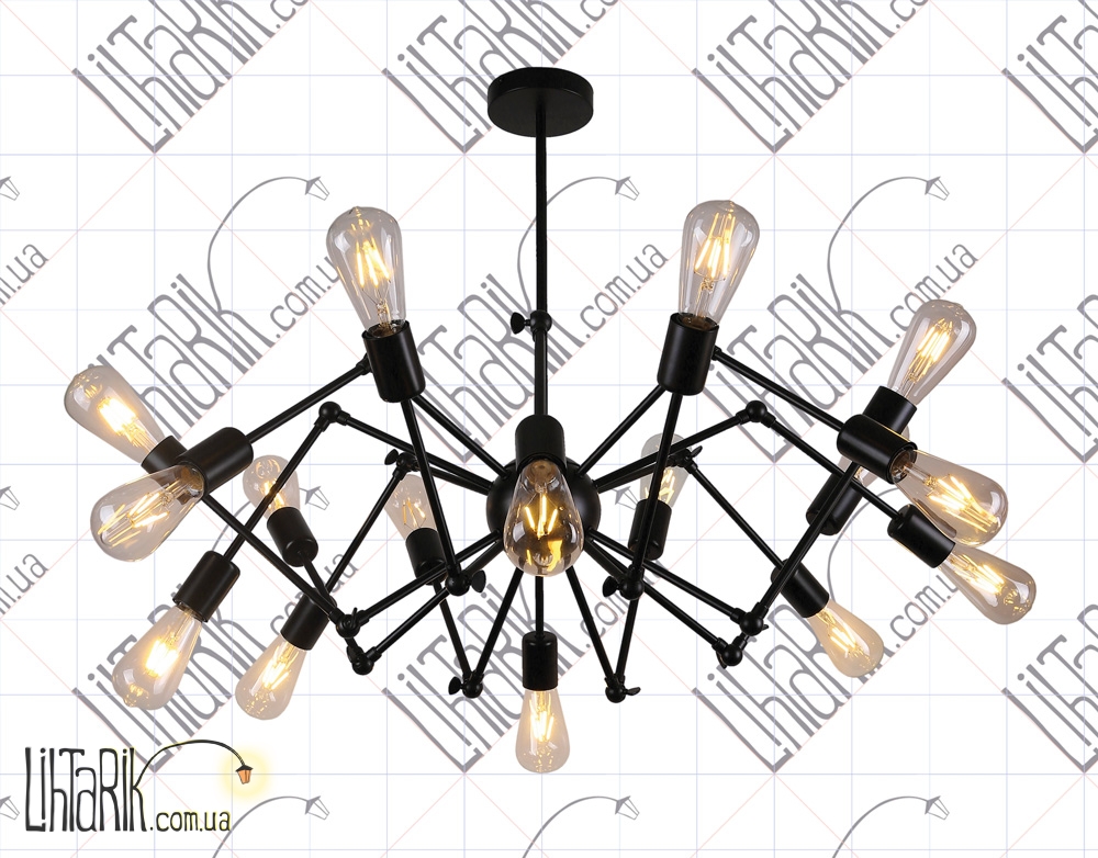 Подвесной светильник, Светильник подвесной оригинальной формы, с минималистским каркасным дизайном, паукообразный дизайн максимально осветит пространство и впишется в любую дизайнерскую среду. Подходит для вашей гостиной, кухни, прихожей. Модель представлена в черных тонах. Светильник изготовлен из металла высокого качества