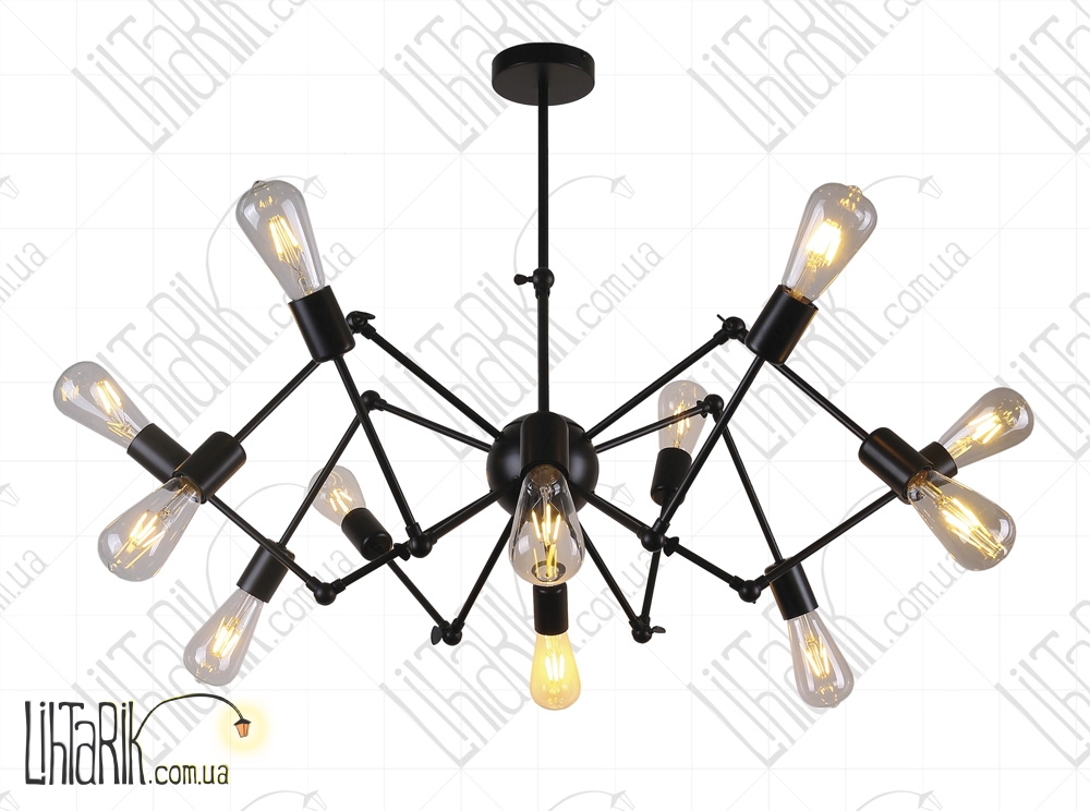 Подвесной светильник, Светильник подвесной оригинальной формы, с минималистским каркасным дизайном, паукообразный дизайн максимально осветит пространство и впишется в любую дизайнерскую среду. Подходит для вашей гостиной, кухни, прихожей. Модель представлена в черных тонах. Светильник изготовлен из металла высокого качества