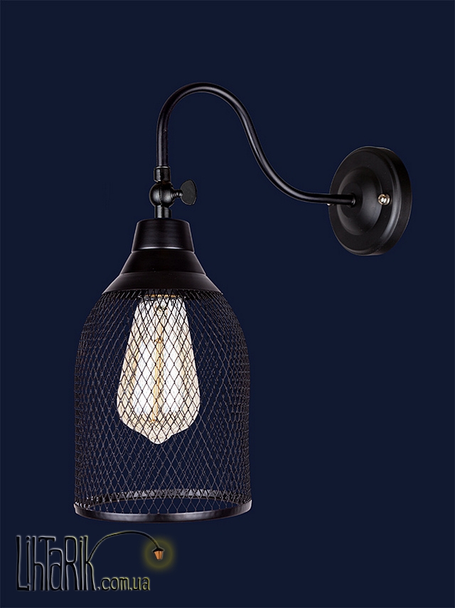Светильник на стену колбовидной формы впишется в любую дизайнерскую среду. Подходит для вашей гостиной, кухни, прихожей. Модель представлена в черных тонах. Светильник изготовлен из металла высокого качества