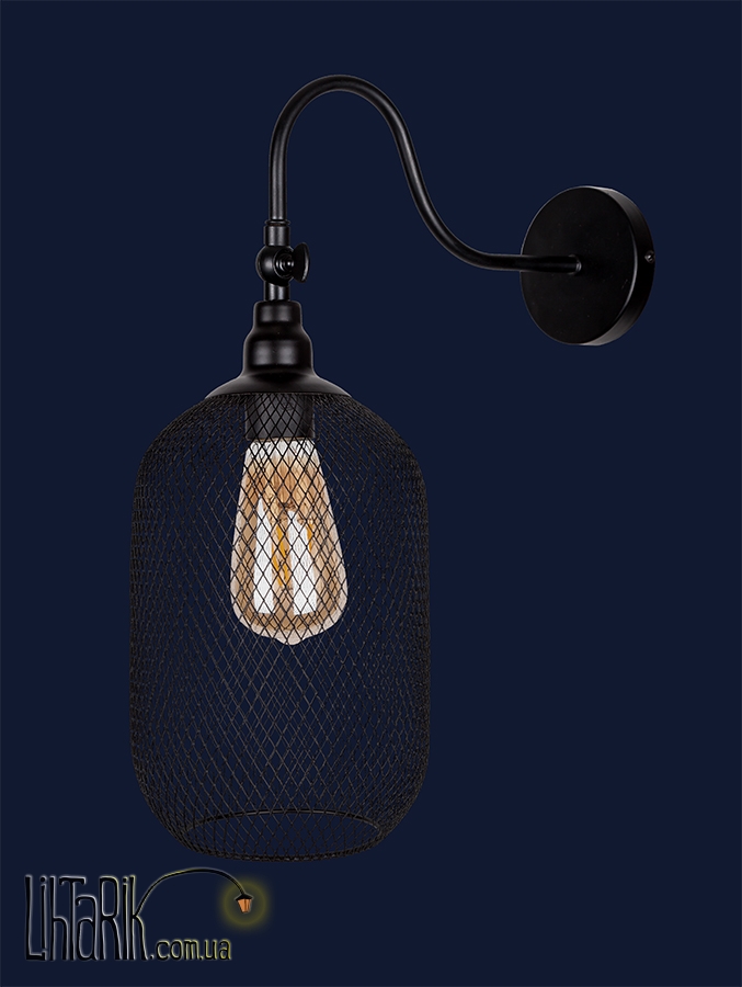 Светильник на стену с минималистским каркасным дизайном, в виде зонта или же купола впишется в любую дизайнерскую среду. Подходит для вашей гостиной, прихожей, спальни. Модель представлена в черных тонах. Светильник изготовлен из металла высокого качества