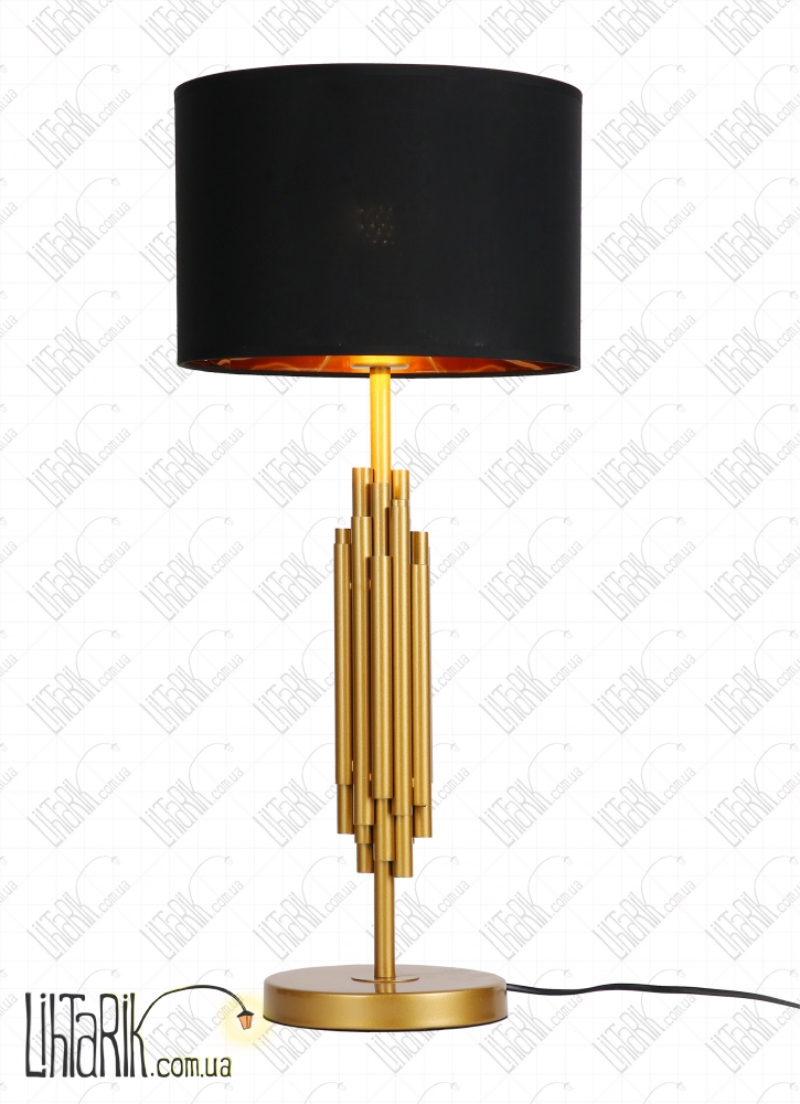 Этот настольный светильник с оригинальным абажуром, бочковидного вида впишется в любую дизайнерскую среду. Модель представлена в золотых, черных тонах. Светильник изготовлен из металла высокого качества