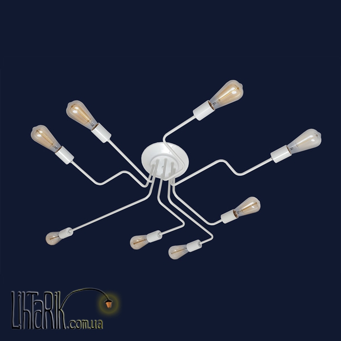 Припотолочная люстра оригинальной формы, паукообразный дизайн максимально осветит пространство и впишется в любую дизайнерскую среду. Подходит для вашей гостиной, кухни, спальни. Модель представлена в белых тонах. Светильник изготовлен из металла высокого качества