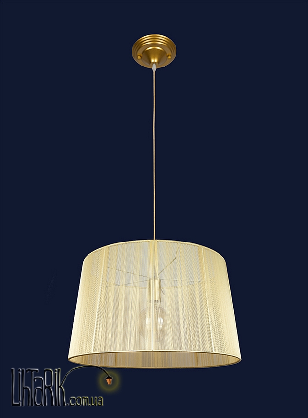 Светильник подвесной с оригинальным абажуром, бочковидного вида впишется в любую дизайнерскую среду. Подходит для вашей гостиной, кухни, спальни. Модель представлена в золотых тонах.