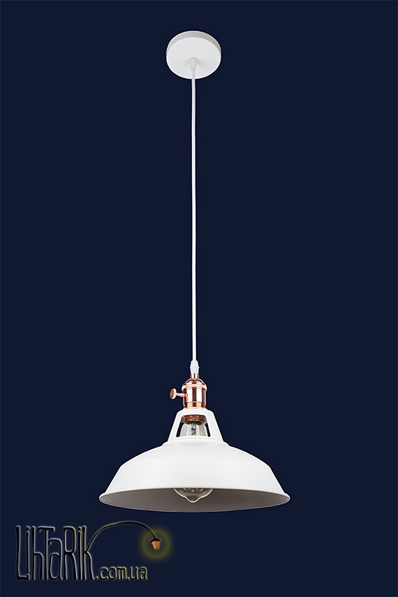 Светильник подвесной в виде зонта или же купола впишется в любую дизайнерскую среду. Подходит для вашей кухни. Модель представлена в белых тонах. Светильник изготовлен из металла высокого качества