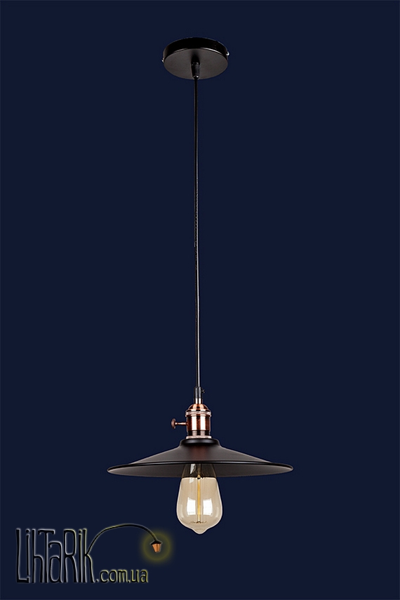 Светильник подвесной как плоская тарелка впишется в любую дизайнерскую среду. Подходит для вашей кухни. Модель представлена в черных тонах. Светильник изготовлен из металла высокого качества