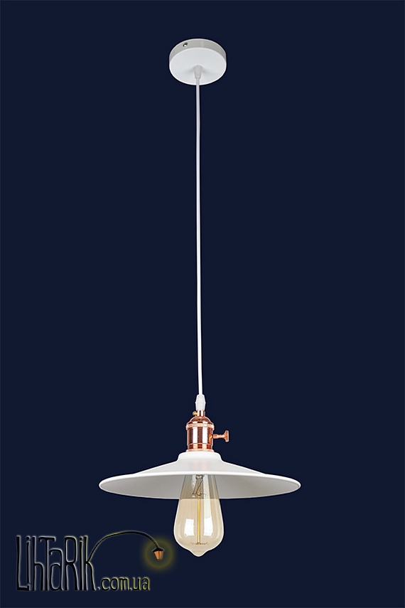 Светильник подвесной как плоская тарелка впишется в любую дизайнерскую среду. Подходит для вашей кухни. Модель представлена в белых тонах. Светильник изготовлен из металла высокого качества