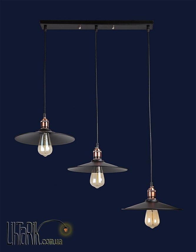 Светильник подвесной как плоская тарелка впишется в любую дизайнерскую среду. Подходит для вашей кухни. Модель представлена в черных тонах. Светильник изготовлен из металла высокого качества