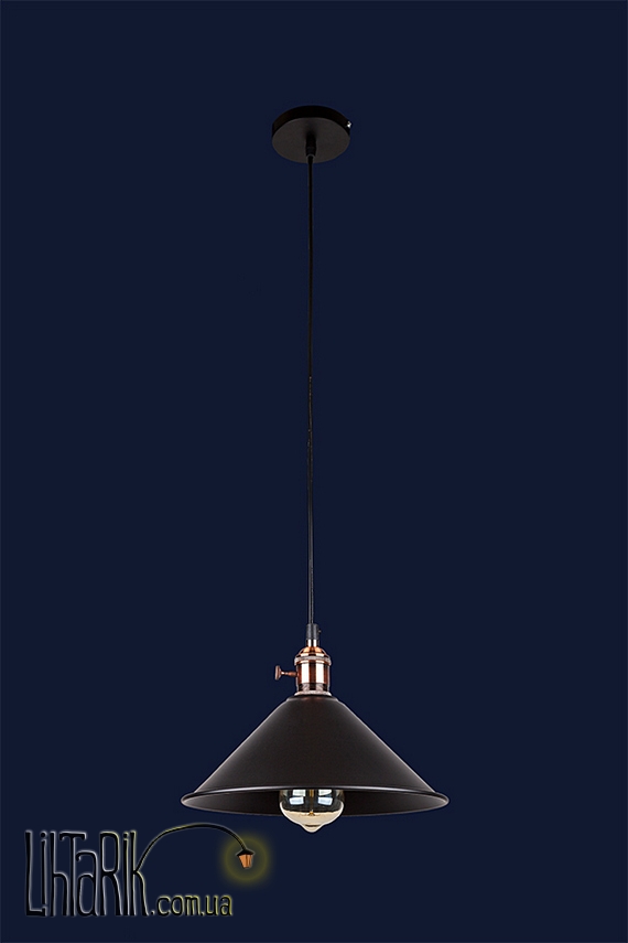 Светильник подвесной конусообразной формы впишется в любую дизайнерскую среду. Подходит для вашей гостиной, кухни, прихожей. Модель представлена в черных тонах. Светильник изготовлен из металла высокого качества