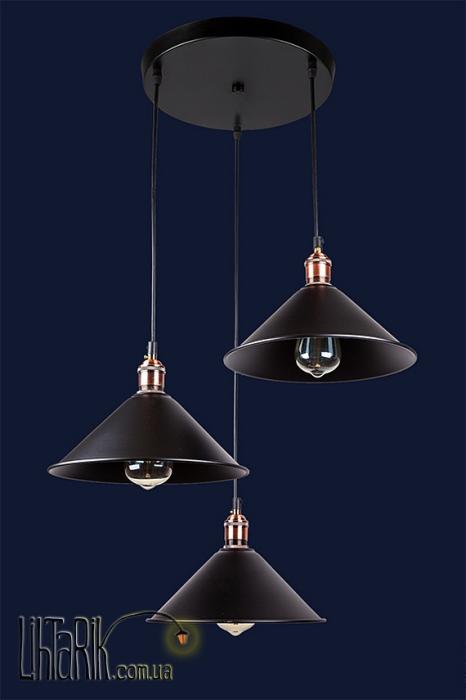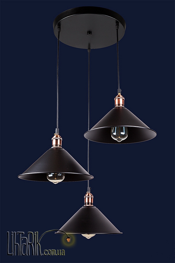 Светильник подвесной конусообразной формы впишется в любую дизайнерскую среду. Подходит для вашей гостиной, кухни, прихожей. Модель представлена в черных тонах. Светильник изготовлен из металла высокого качества