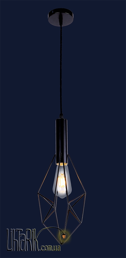 Подвесной светильник, Светильник подвесной оригинальной формы, с минималистским каркасным дизайном впишется в любую дизайнерскую среду. Подходит для вашей кухни. Модель представлена в черных тонах. Светильник изготовлен из металла высокого качества