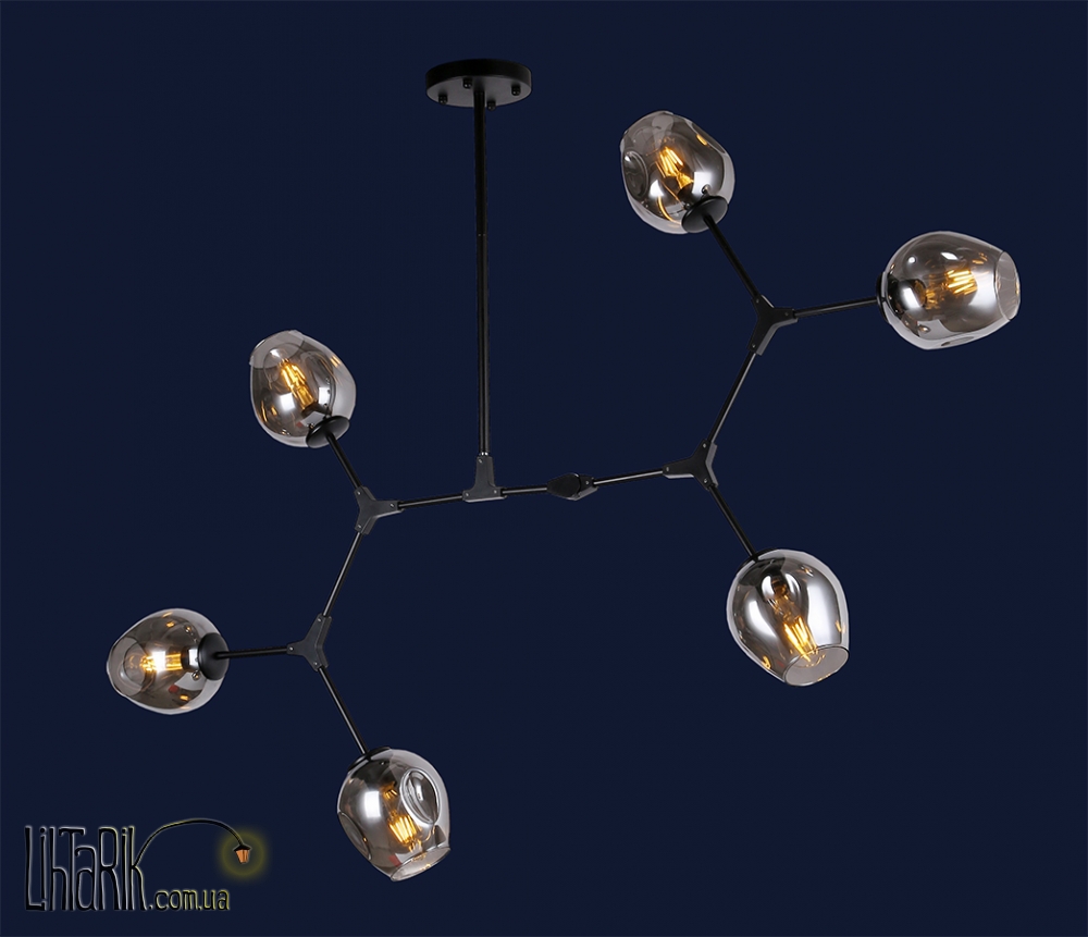 Светильник подвесной круглого (шарообразного) вида впишется в любую дизайнерскую среду. Подходит для вашей гостиной, спальни. Модель представлена в черных тонах. Светильник изготовлен из металла высокого качества