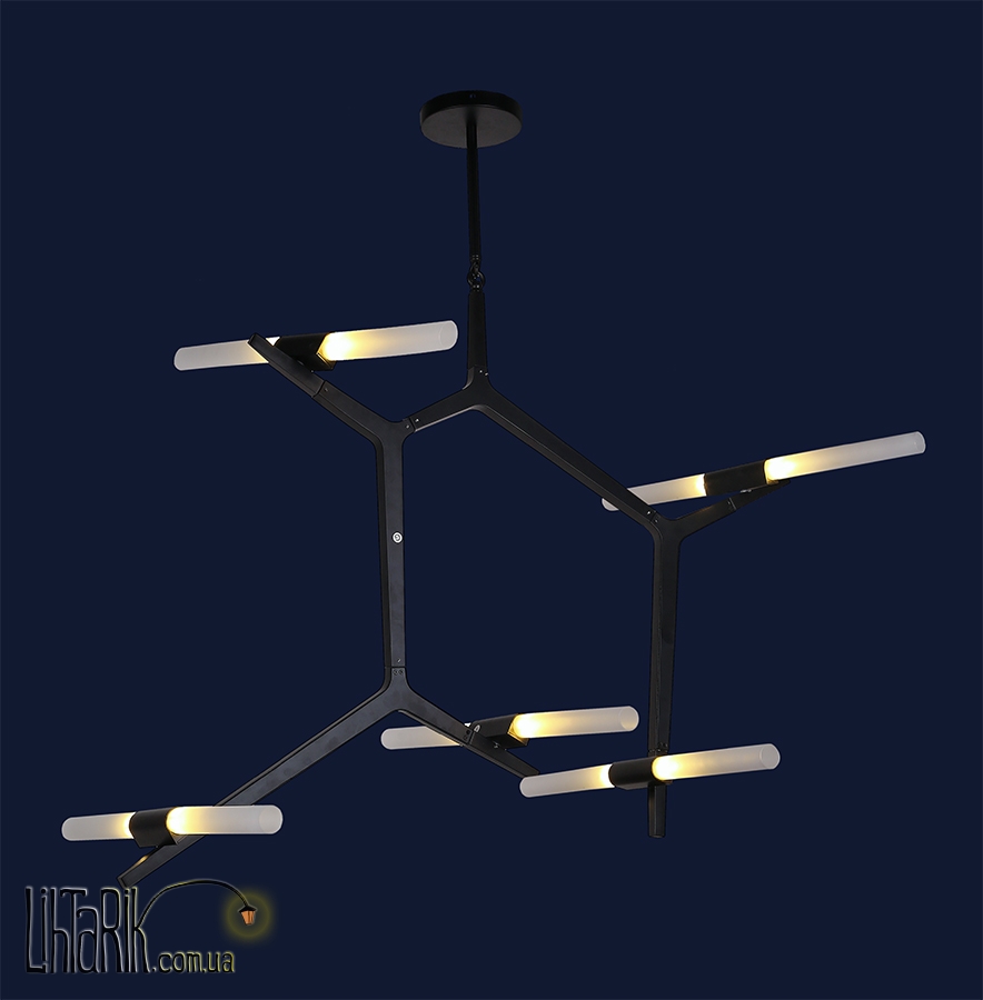 Светильник подвесной оригинальной формы впишется в любую дизайнерскую среду. Подходит для вашей гостиной. Модель представлена в черных тонах. Светильник изготовлен из металла высокого качества