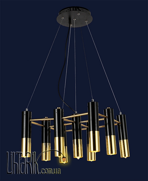 Светильник подвесной с рожковыми элементами дизайна впишется в любую дизайнерскую среду. Подходит для вашей гостиной, спальни. Модель представлена в золотых, черных тонах. Светильник изготовлен из металла высокого качества