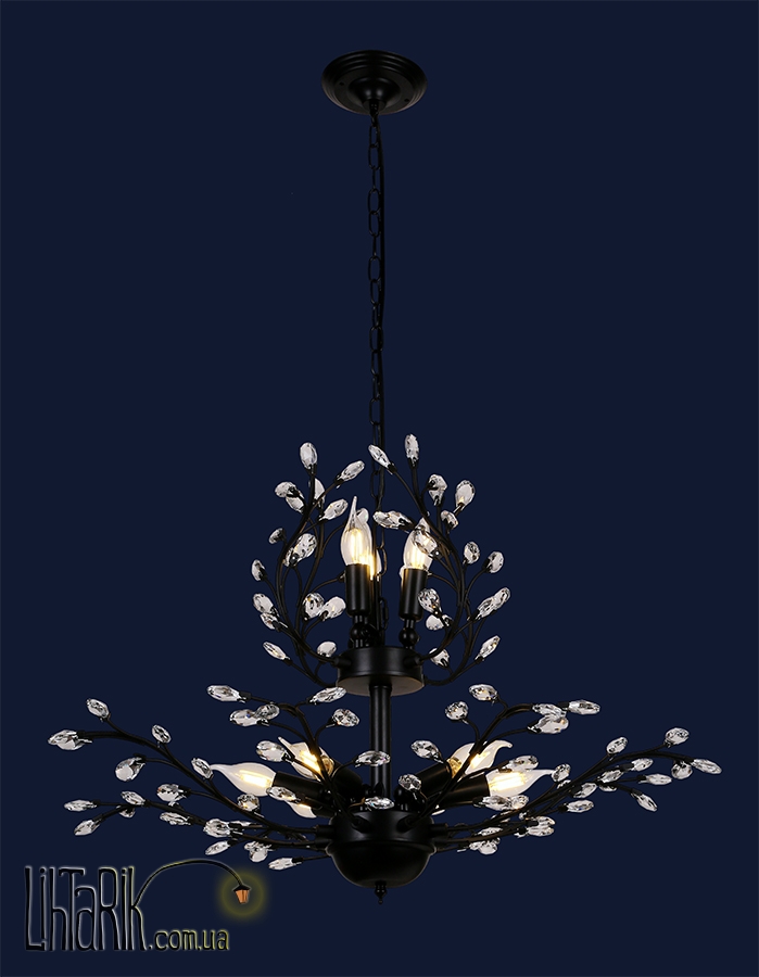 Подвесной светильник паукообразный дизайн максимально осветит пространство и, в виде свечей, с хрустальными подвесами впишется в любую дизайнерскую среду. Подходит для вашей гостиной, спальни. Модель представлена в черных тонах. Светильник изготовлен из металла высокого качества