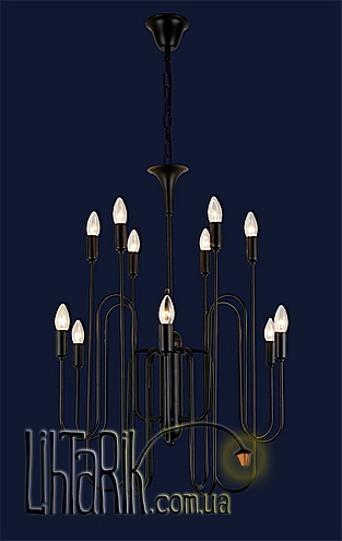 Подвесной светильник с рожковыми элементами дизайна впишется в любую дизайнерскую среду. Подходит для вашей гостиной, спальни. Модель представлена в черных тонах. Светильник изготовлен из металла высокого качества