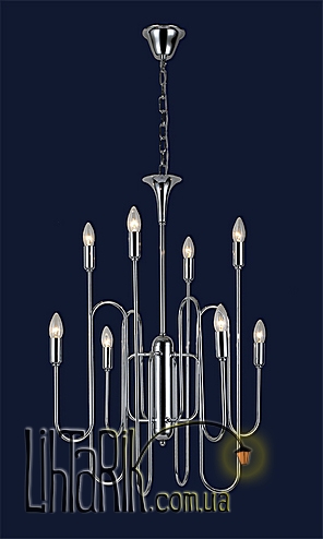 Подвесной светильник с рожковыми элементами дизайна впишется в любую дизайнерскую среду. Подходит для вашей гостиной, спальни. Модель представлена в хромированных тонах. Светильник изготовлен из металла высокого качества