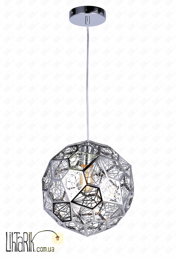 Подвесной светильник, Светильник подвесной с минималистским каркасным дизайном, круглого (шарообразного) вида, выполнен в с супер современной геометрической форме (полигонами) впишется в любую дизайнерскую среду. Подходит для вашей кухни, прихожей. Модель представлена в серебрянных тонах. Светильник изготовлен из металла высокого качества