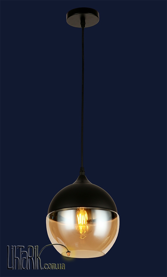 Светильник подвесной круглого (шарообразного) вида впишется в любую дизайнерскую среду. Подходит для вашей гостиной, кухни, прихожей. Модель представлена в черных тонах. Светильник изготовлен из металла, стекла высокого качества