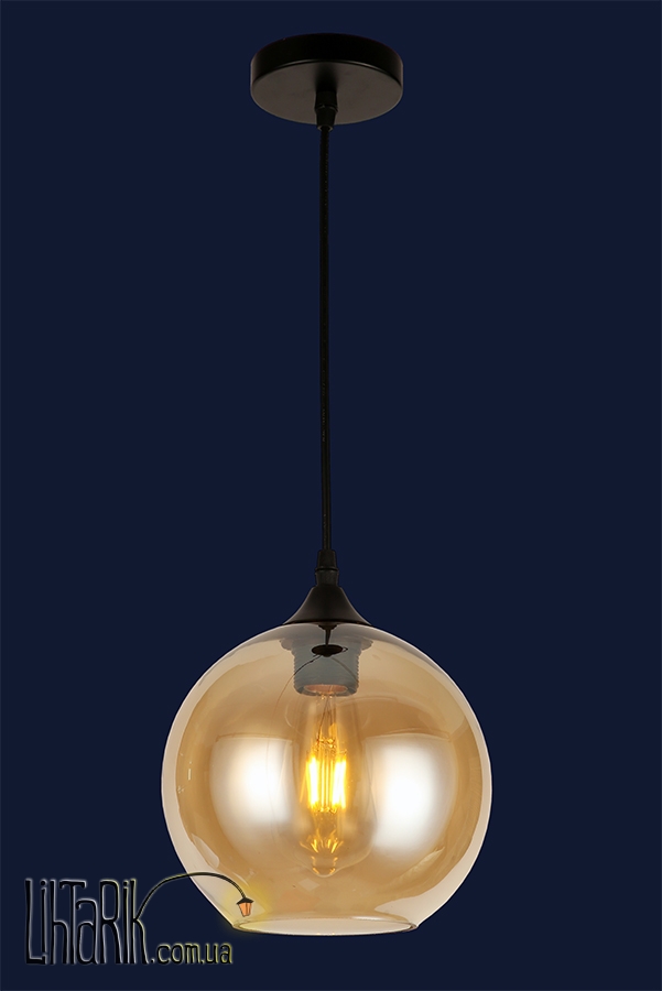 Светильник подвесной круглого (шарообразного) вида впишется в любую дизайнерскую среду. Подходит для вашей гостиной, кухни, прихожей. Модель представлена в коричневых тонах. Светильник изготовлен из стекла высокого качества
