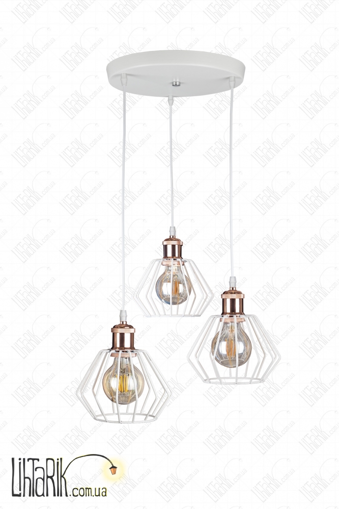 Светильник подвесной бочковидного вида, с минималистским каркасным дизайном впишется в любую дизайнерскую среду. Подходит для вашей гостиной, кухни, спальни. Модель представлена в белых, медных тонах. Светильник изготовлен из металла высокого качества