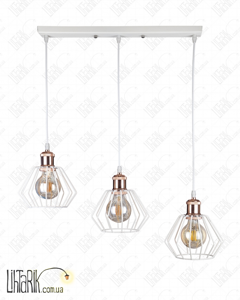 Светильник подвесной бочковидного вида, с минималистским каркасным дизайном впишется в любую дизайнерскую среду. Подходит для вашей гостиной, кухни, спальни. Модель представлена в белых, медных тонах. Светильник изготовлен из металла высокого качества