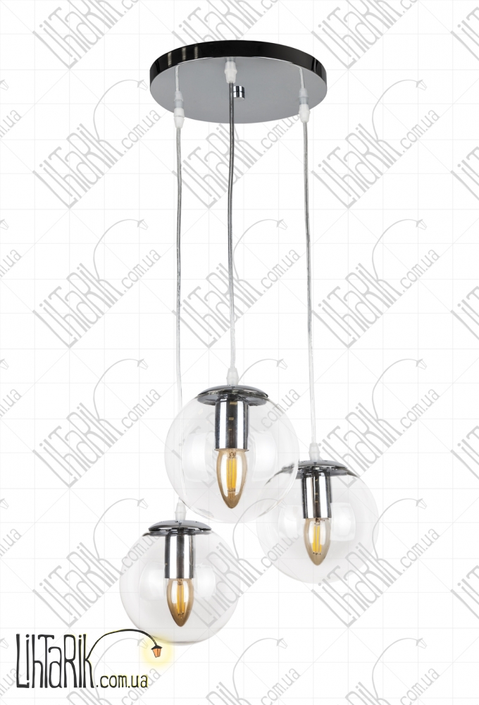 Светильник подвесной круглого (шарообразного) вида впишется в любую дизайнерскую среду. Подходит для вашей гостиной, кухни, прихожей. Модель представлена в прозрачных, хромированных тонах. Светильник изготовлен из металла, стекла высокого качества