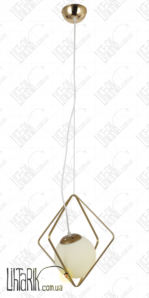 Светильник подвесной с минималистским каркасным дизайном, круглого (шарообразного) вида впишется в любую дизайнерскую среду. Подходит для вашей гостиной, кухни, спальни. Модель представлена в золотых тонах. Светильник изготовлен из металла, стекла высокого качества