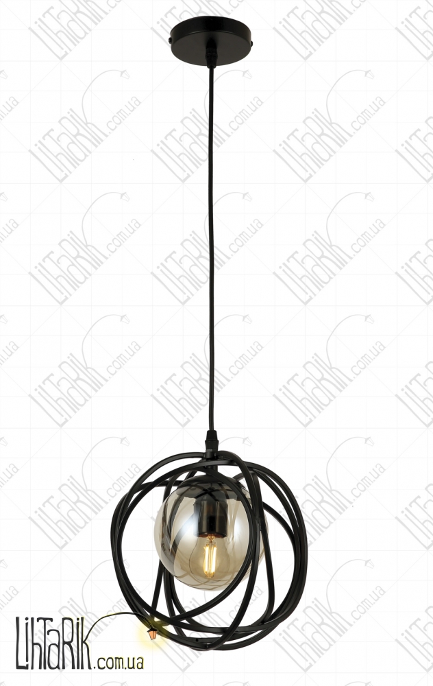 Светильник подвесной с минималистским каркасным дизайном, круглого (шарообразного) вида впишется в любую дизайнерскую среду. Подходит для вашей гостиной, кухни, спальни. Модель представлена в черных тонах. Светильник изготовлен из металла, стекла высокого качества