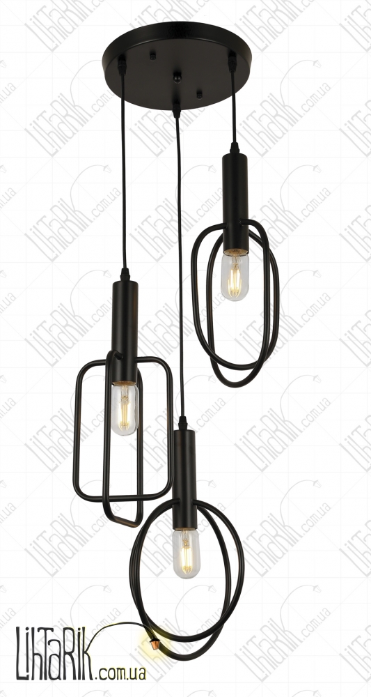 Подвесной светильник, Светильник подвесной с минималистским каркасным дизайном впишется в любую дизайнерскую среду. Подходит для вашей гостиной, кухни, спальни. Модель представлена в черных тонах. Светильник изготовлен из металла высокого качества