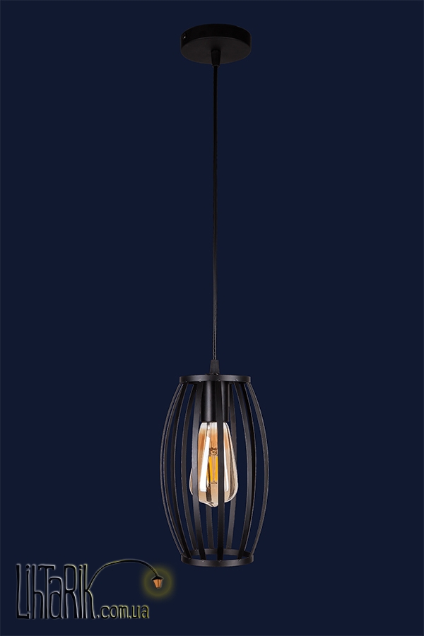 Светильник подвесной колбовидной формы впишется в любую дизайнерскую среду. Подходит для вашей гостиной, кухни, прихожей. Модель представлена в черных тонах. Светильник изготовлен из металла высокого качества