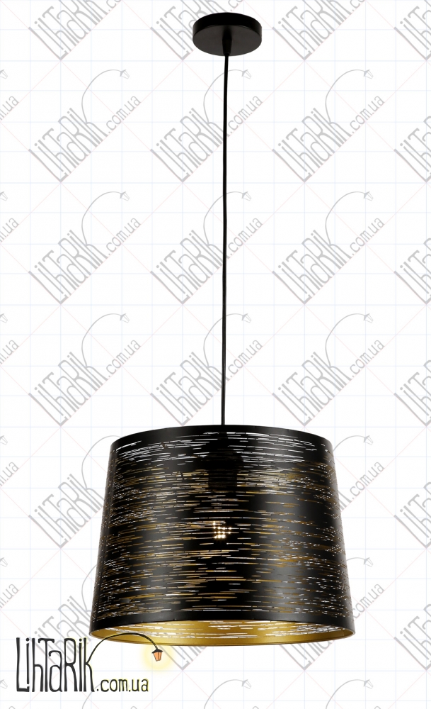 Светильник подвесной с оригинальным абажуром, бочковидного вида впишется в любую дизайнерскую среду. Подходит для вашей гостиной, кухни, прихожей, спальни. Модель представлена в золотых, черных тонах. Светильник изготовлен из металла высокого качества
