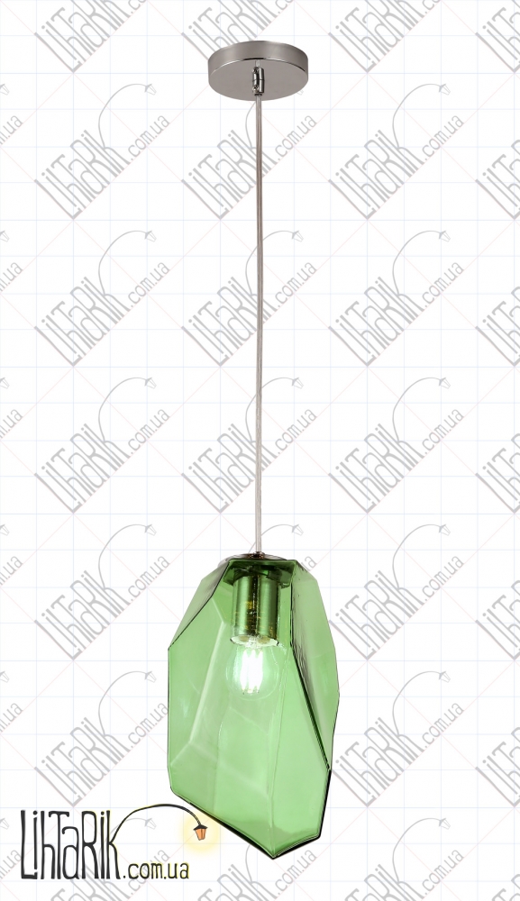 Светильник подвесной оригинальной формы впишется в любую дизайнерскую среду. Подходит для вашей гостиной, кухни, прихожей. Модель представлена в зеленых, хромированных тонах. Светильник изготовлен из металла, стекла высокого качества