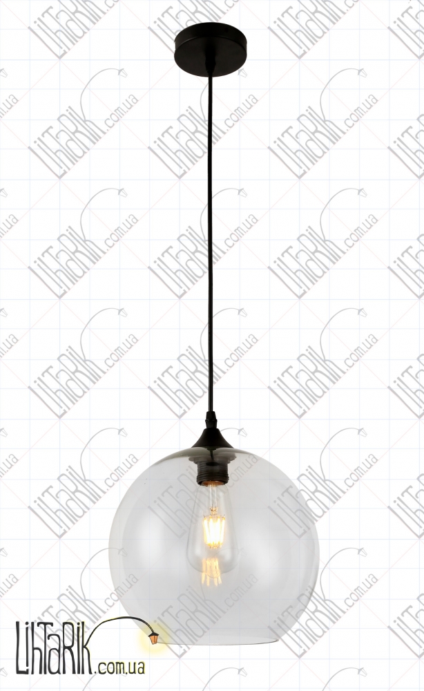 Светильник подвесной круглого (шарообразного) вида впишется в любую дизайнерскую среду. Подходит для вашей гостиной, кухни, прихожей. Модель представлена в прозрачных, черных тонах. Светильник изготовлен из металла, стекла высокого качества