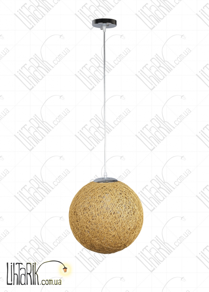 Светильник подвесной круглого (шарообразного) вида впишется в любую дизайнерскую среду. Подходит для вашей гостиной, кухни, прихожей, спальни. Модель представлена в бежевых тонах.