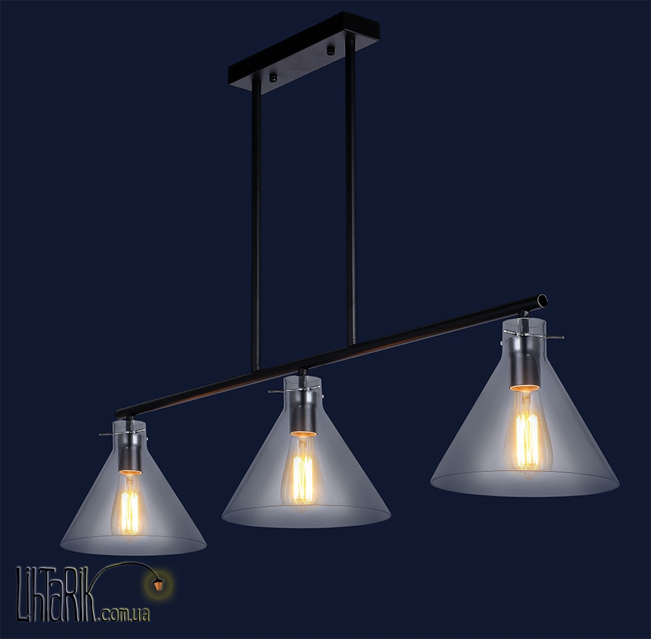 Подвесной светильник, Светильник подвесной конусообразной формы впишется в любую дизайнерскую среду. Подходит для вашей гостиной, кухни. Модель представлена в матовых тонах. Светильник изготовлен из металла, стекла высокого качества