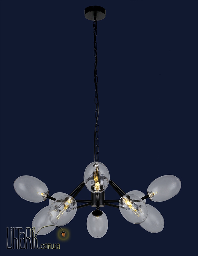 Подвесной светильник оригинальной формы впишется в любую дизайнерскую среду. Подходит для вашей гостиной. Модель представлена в прозрачных, черных тонах. Светильник изготовлен из металла высокого качества