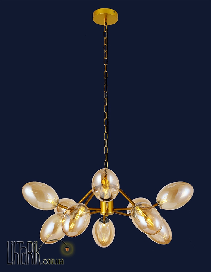 Подвесной светильник оригинальной формы впишется в любую дизайнерскую среду. Подходит для вашей гостиной. Модель представлена в золотых тонах. Светильник изготовлен из металла высокого качества