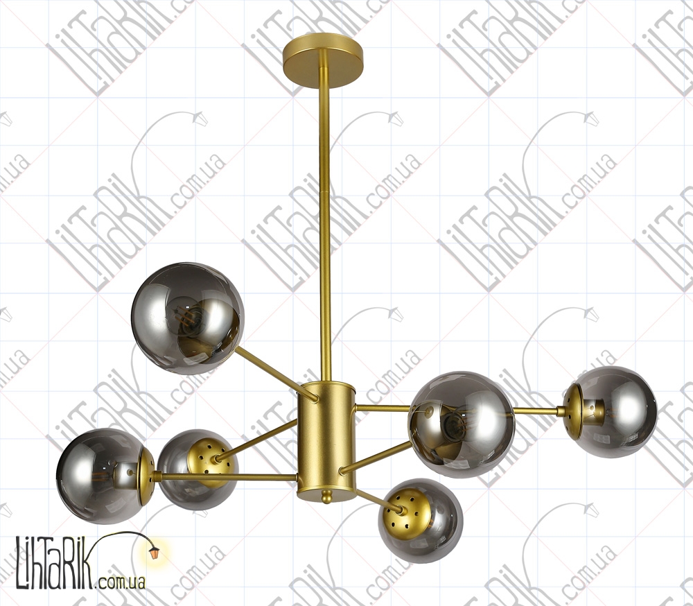 Подвесной светильник круглого (шарообразного) вида впишется в любую дизайнерскую среду. Подходит для вашей гостиной, спальни. Модель представлена в золотых, черных тонах. Светильник изготовлен из металла, стекла высокого качества