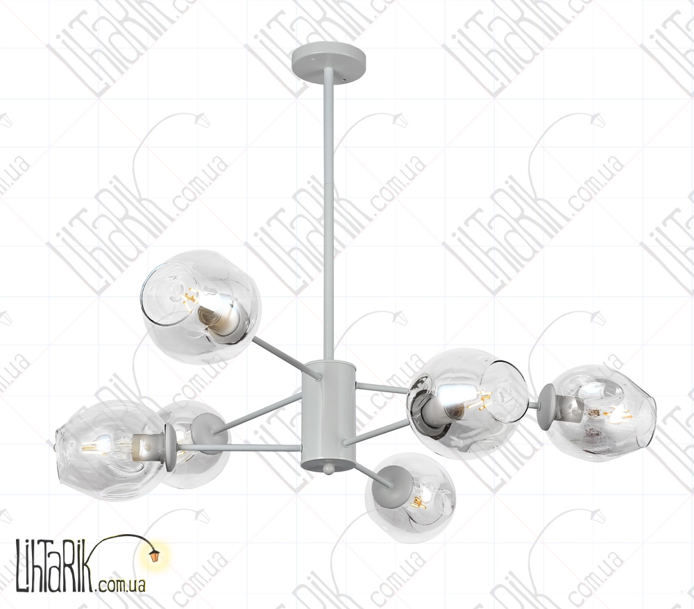 Подвесной светильник круглого (шарообразного) вида впишется в любую дизайнерскую среду. Подходит для вашей гостиной, спальни. Модель представлена в белых, прозрачных тонах. Светильник изготовлен из металла, стекла высокого качества