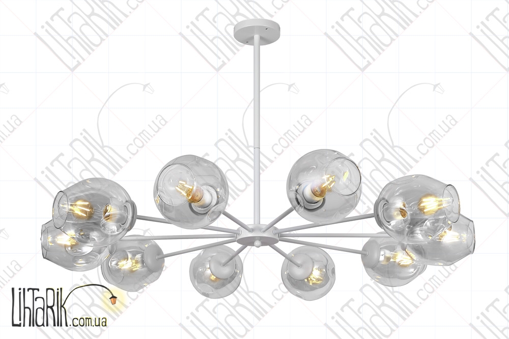 Светильник подвесной круглого (шарообразного) вида впишется в любую дизайнерскую среду. Подходит для вашей гостиной, кухни, спальни. Модель представлена в белых, прозрачных тонах. Светильник изготовлен из металла, стекла высокого качества
